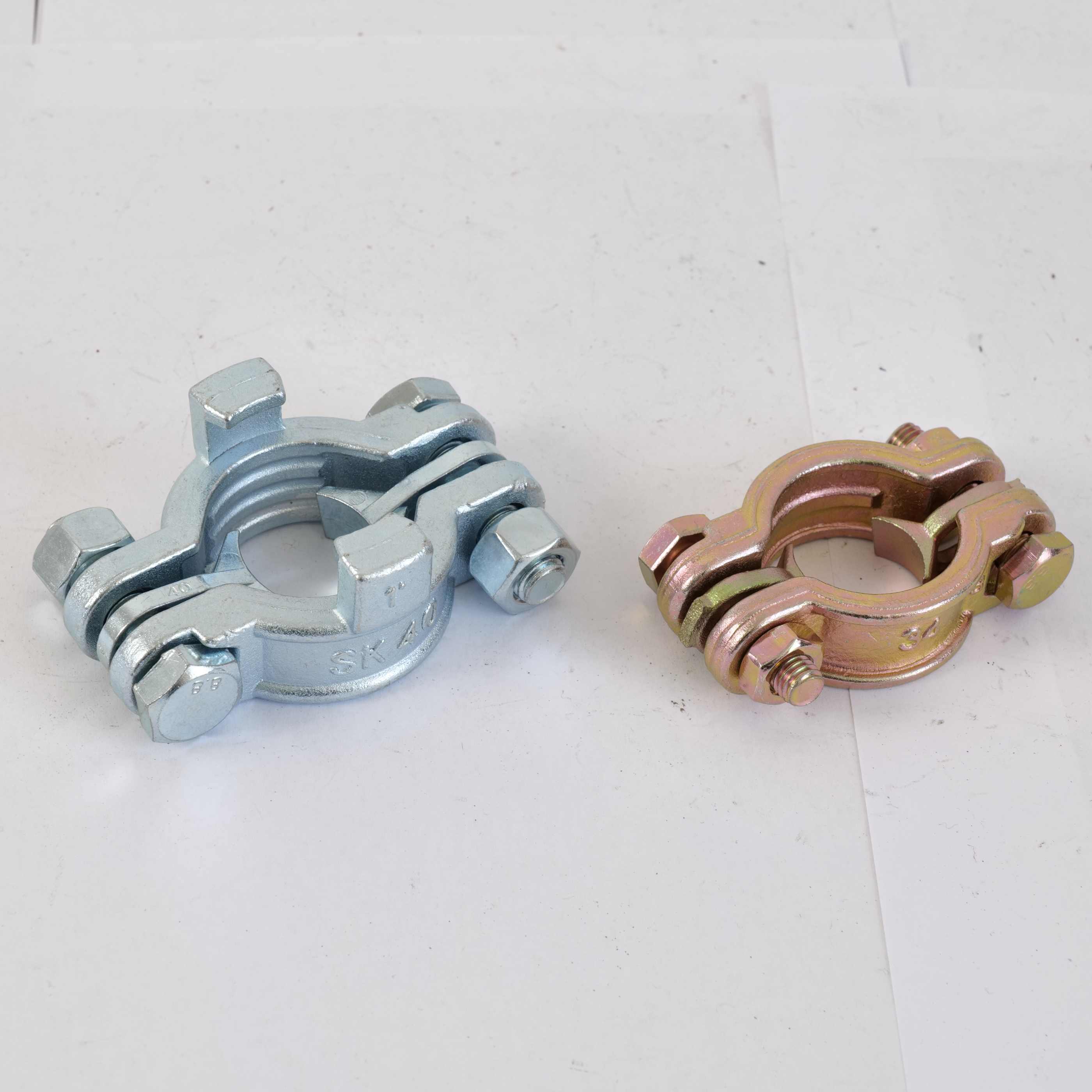 द डबल बोल्ट क्लैंप की सामग्री कार्बन है स्टील, और सामग्री पीतल और स्टेनलेस स्टील भी उपलब्ध है, प्रौद्योगिकी है सटीक कास्टिंग। सतह Zn प्लेटेड सिल्वर रंग या पीले रंग की है।